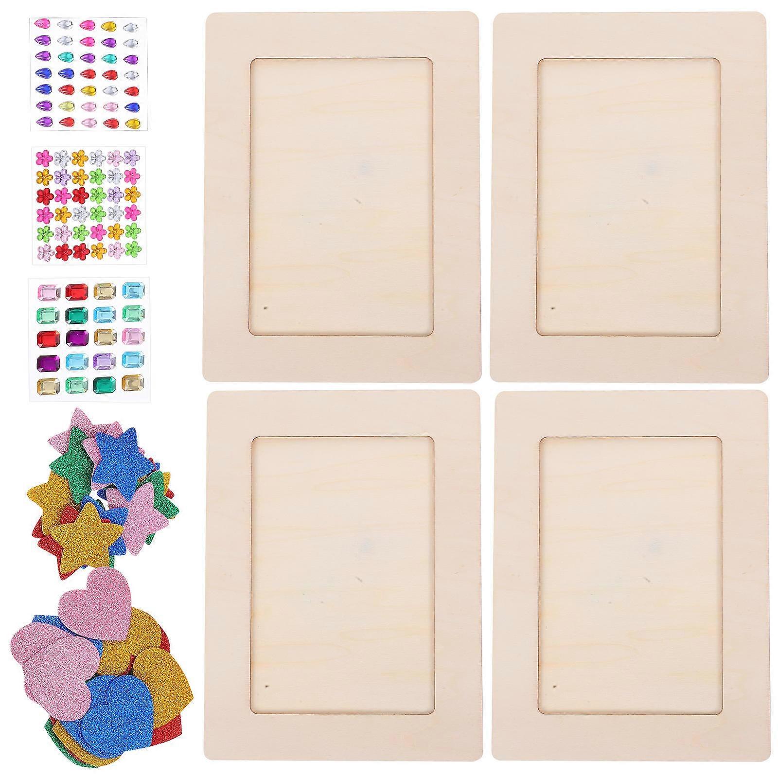 Wooden Picture Frame Craft Set for Children 4Sets with Decorative Stickers