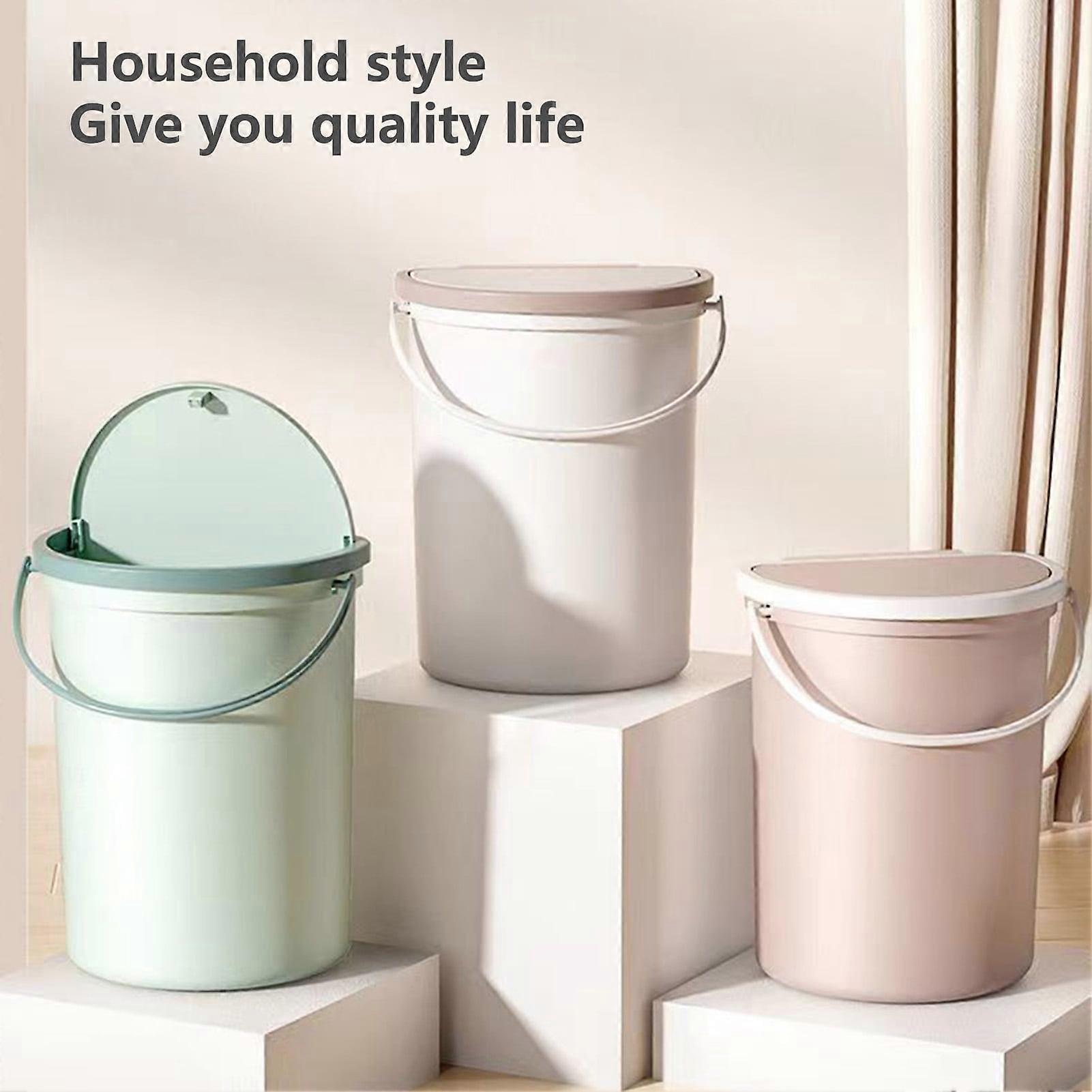 Yesbay Trash Can with Handle Wall Mounted Press Design Self-adhesive Wide Open Semi-Circular Waste Bin for Bathroom