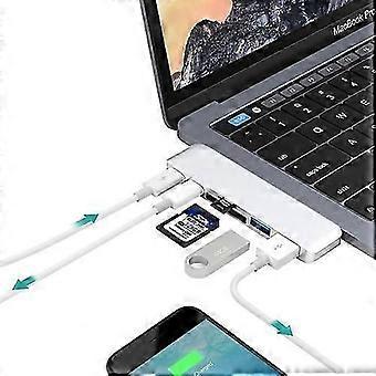 ZRUXE HB-053 6 in 1 Multifunctional Aluminum Alloy 5Gbps Transfer Rate Dual USB-C/Type-C Hub Adapter with 2 USB 3.0 Ports and 2 USB-C/Type-C Ports and